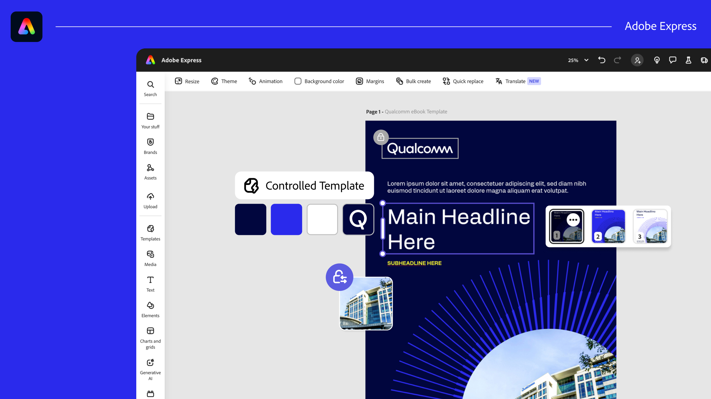 - Adobe Express: Across the Qualcomm marketing organization, Express will act as a self-service tool that allows teams to create and customize assets on the fly. It complements Adobe GenStudio for Performance Marketing, with approved brand guidelines (templates, colors, fonts) that give more individuals the confidence to produce content for their channels. It will enable the social and regional teams, for instance, to quickly create assets for time-sensitive campaigns.