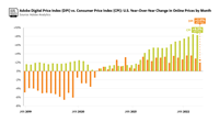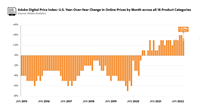 SAN JOSE, Calif.--(BUSINESS WIRE)-- Adobe (Nasdaq:ADBE) today announced the latest online inflation data from the Adobe Digital Price Index (DPI), powered by Adobe Analytics. In April 2022, online prices increased 2.9%year-over-year (YoY), down from the record 3.6% YoY increase in March – a decrease of 0.5% month-over-month (MoM). While this marks the 23rd consecutive month of inflation online YoY, April shows early signs of online price increases beginning to slow. Over half of the categories tracked by the DPI (10 out of 18) saw MoM price decreases in April.